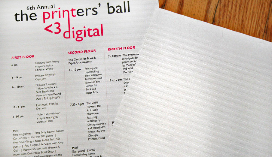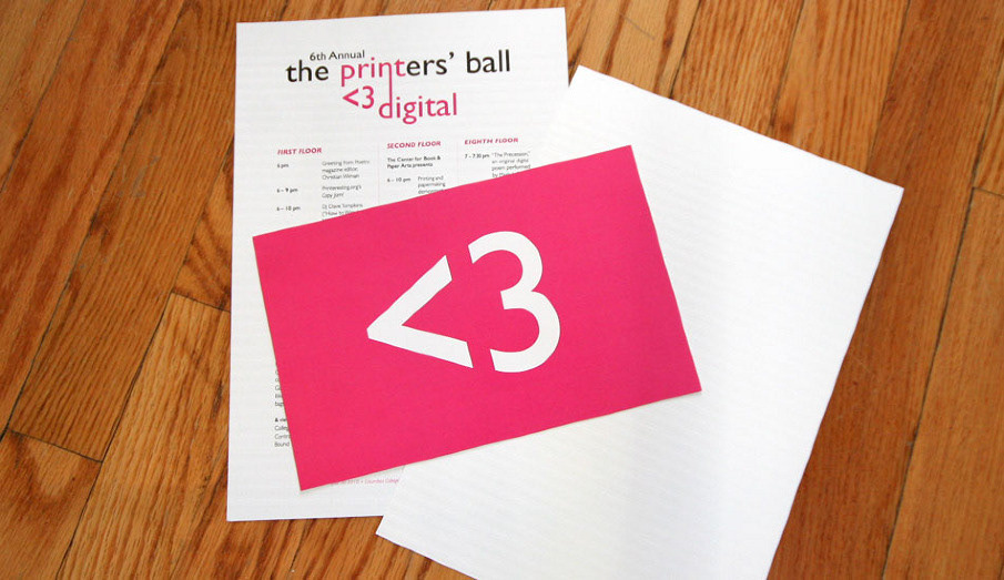Printers Ball "Print Loves Digital" save the date & letter-pressed program.