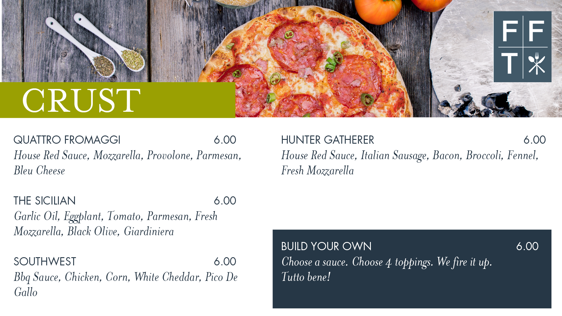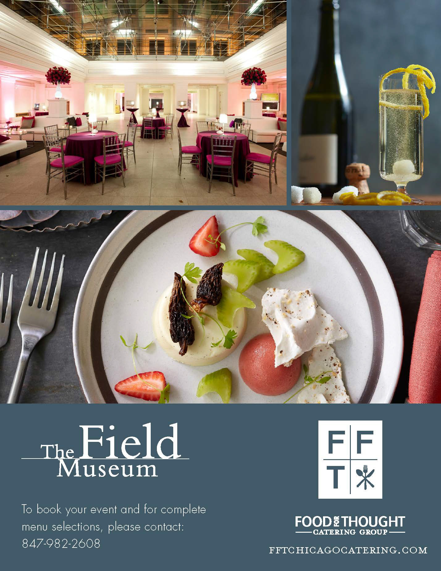 Various digital menu design and ad campaigns for Food For Thought Catering Chicago.