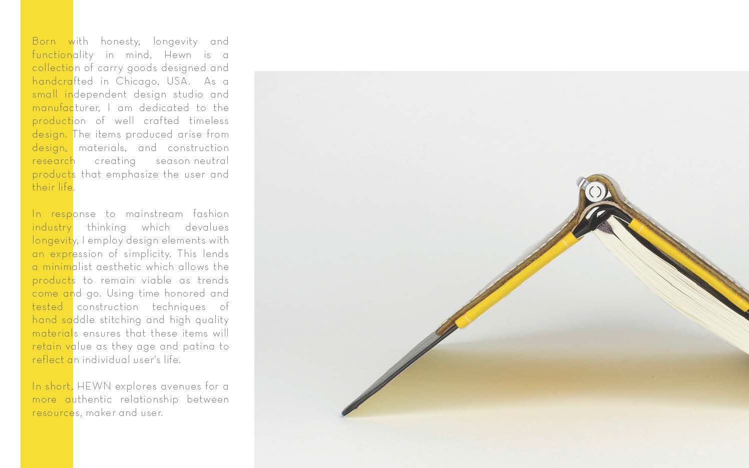 Cover design and pages from HEWN Leathergoods lookbook.