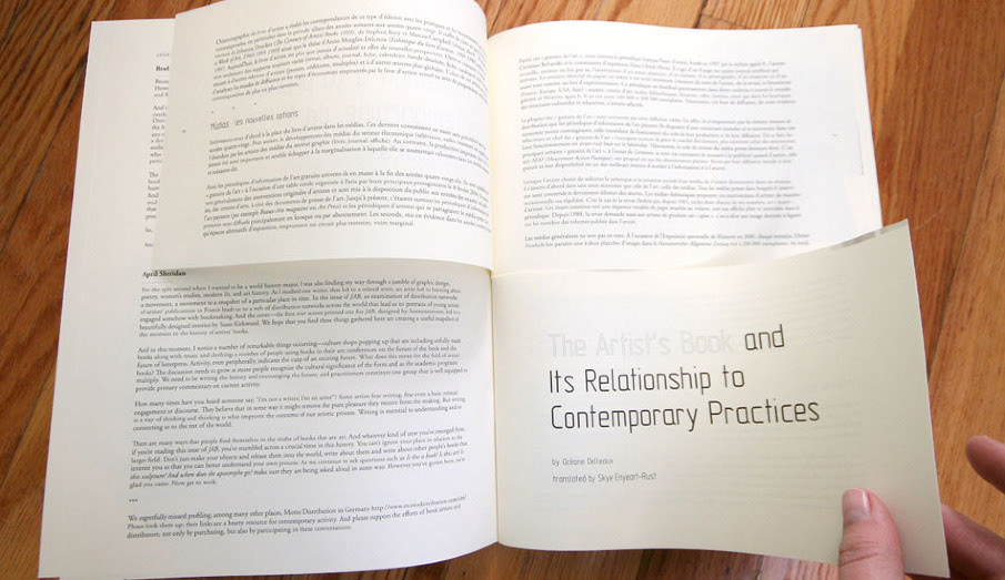 JAB magazine design and layout with split pages (french on top, english on bottom). Cover by Sonnenzimmer.