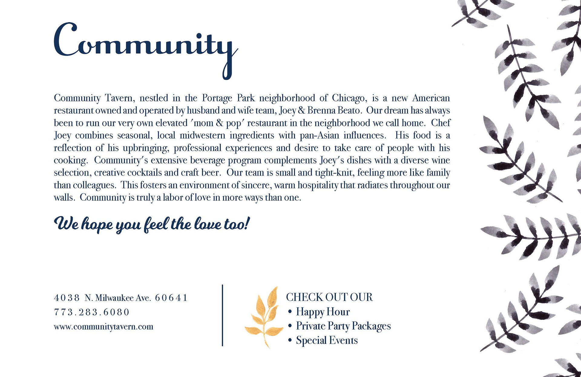 Postcard design for Community, a local Chicago restaurant & small business.