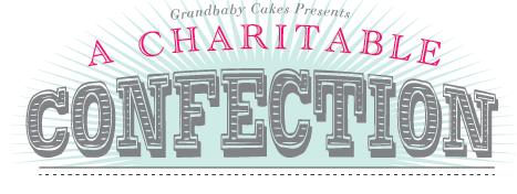 A logo for a Charitable Confection. A dessert cocktail party and unique bake sale featuring Chicago's best bakeries and cocktail vendors to raise funds for a important causes.